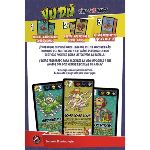 Powerful superheroes from the farthest corners of the multiverse and strange characters with exotic powers are ready for battle! Are you ready to make life miserable for your friends with two new schools of magic? Requires ‘Voodoo’ to play; cannot be played separately. Contents: 32 cards and 1 rulebook.
