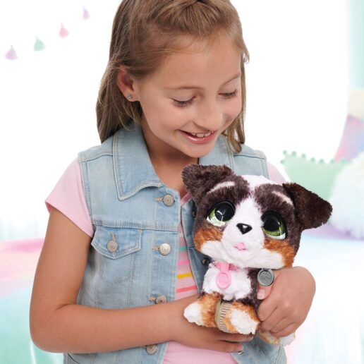 Approximate size: 23cm. Age: +4 years. Caring for a pet has never been cuter than with the FurReal Walk-A-Lots Bernedoodle Interactive Toy. This black, white and tan puppy is not only adorable, but also interactive and ready for a walk. Clip the included leash onto the puppys collar. Then, with a gentle nudge, take her for a stroll around the house. Her bouncy gait and wobbly head move like a real pet. This adorable children’s toy emits cute puppy sound effects as it moves. Hear barking, yowling, a happy melody and cute noises. After the walk, children can cuddle, pet and care for their puppy. FurReal Walk-A-Lots is a sweet addition to any child’s collection of stuffed animals and other FurReal Pets (sold separately). Powered by 3 AG13 batteries (included).