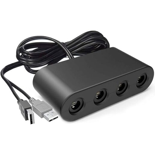 Grab your GC controllers and start enjoying your favorite games with this controller adapter for Nintendo Switch, Wii U, PC and Mac. This is an easy to use adapter that is plug and play with no drivers required! Featuring a 3 foot cable for convenient placement, and four ports to connect your controllers simultaneously