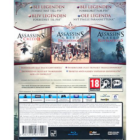 Assassin’s Creed: The Ezio Collection är en samling av tre spel, nämligen Assassin’s Creed II, Assassin’s Creed Brotherhood och Assassin’s Creed Revelations. Spelen släpptes ursprungligen till PS3 och Xbox 360, men har nu uppdaterats och förbättrats för att spelas på PS4. Åldersgränsen för spelen är 18 år enligt PEGI, och spelet är utgivet av Ubisoft. I spelen får spelaren följa Ezio Auditore da Firenze, en italiensk mördare under renässansen, i hans äventyr för att rädda sin familj och störta korruptionen i den italienska staten. Release 2016. PEGI 18+. Action